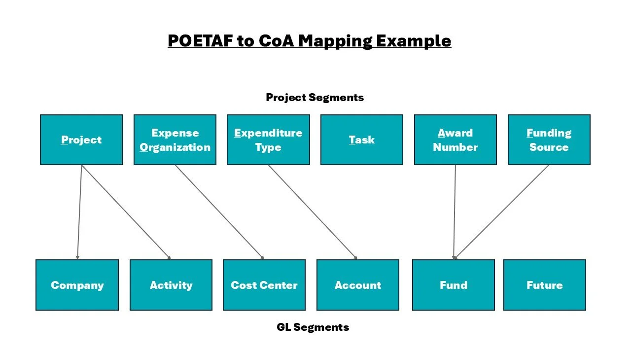 In Oracle Cloud, all transactions coded to projects use POETAF instead of a general ledger (GL) chart of accounts (CoA) string.